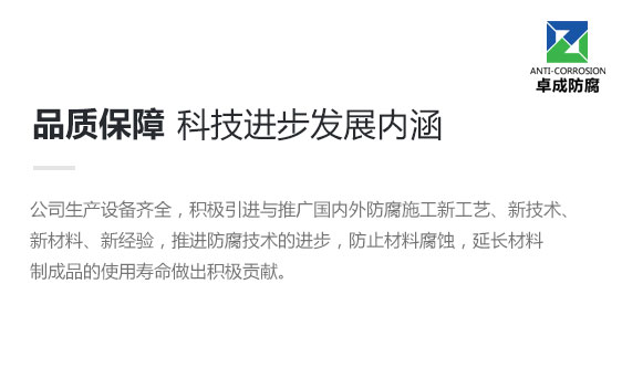 浙江卓成防腐工程有限公司(原名上虞市達成防腐工程有限公司)成立于2005年,注冊資本1000萬元,是一家專業(yè)承包防腐保溫工程施工企業(yè),公司座落在紹興市杭州灣上虞經(jīng)濟技術(shù)開發(fā)區(qū)。公司現(xiàn)有職工60余人,其中專業(yè)技術(shù)人員15人,公司下設(shè)多個項目經(jīng)理部。公司致力于防腐保溫工程的技術(shù)研究和工程施工,生產(chǎn)設(shè)備齊全,技術(shù)工藝先進,積累了豐富的施工經(jīng)驗,具有較雄厚的經(jīng)濟實力。公司施工技術(shù)人員經(jīng)過多年培養(yǎng)實踐,具有一定技術(shù)素質(zhì),并能吃苦耐勞,是一只善打硬仗的施工隊伍。